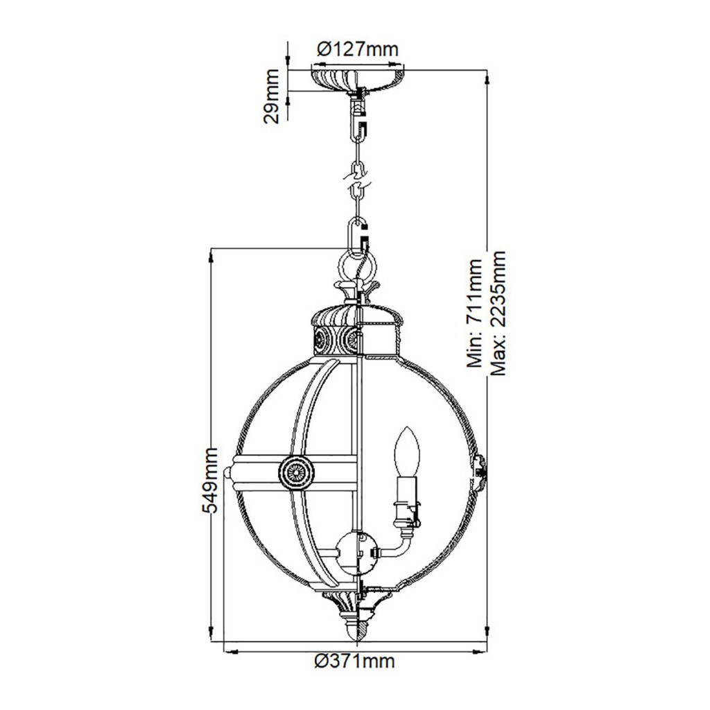 Az ADAms klasszikus stílusú függőlámpa gömb formája és díszítése a viktoriánus kort idéz meg. A lámpa gömb formájú szerkezetén belül 3 darab hagyományos E14 foglalat helyezkedik el. Magassága a lánc hosszának változtatásával 71cm és 223 cm közt változatható. Ideális választás folyosókra, közösségi terekbe.