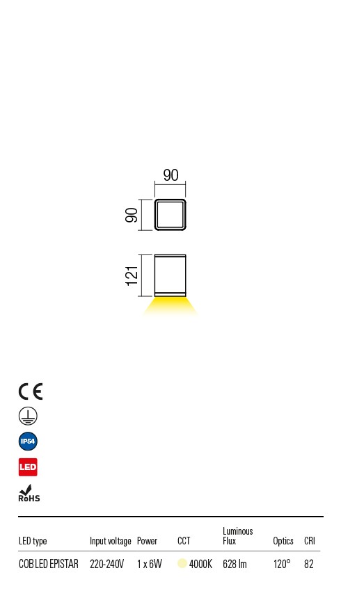 Maximális fényerő: 628 Lm