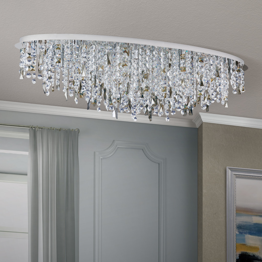 A CRYSTALRIVER modern kristály mennyezeti lámpa 21xG9, króm megbízható és esztétikus választás otthoni vagy irodai használatra. Stílusát tekintve Modern kristály, króm árnyalatban, fém anyagból készült. G9 foglalattal kompatibilis, így cserélhető fényforrással használható. A(z) CRYSTALRIVER lámpacsalád tagja, így más kiegészítőkkel jól kombinálható.