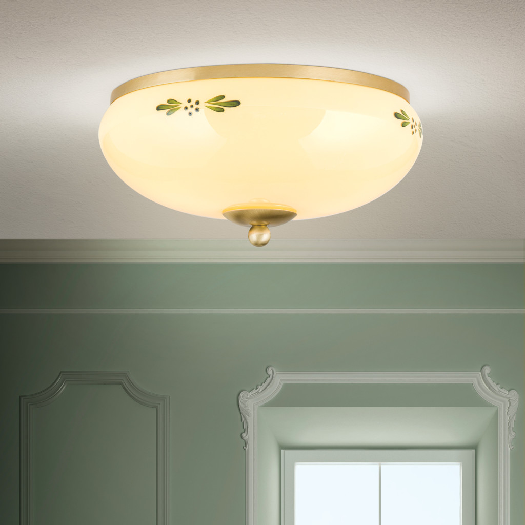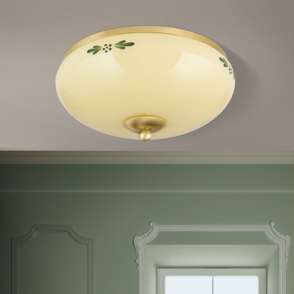 LANDHAUS rusztikus mennyezeti lámpa 2xE27, matt réz 28 cm sárga, zöld