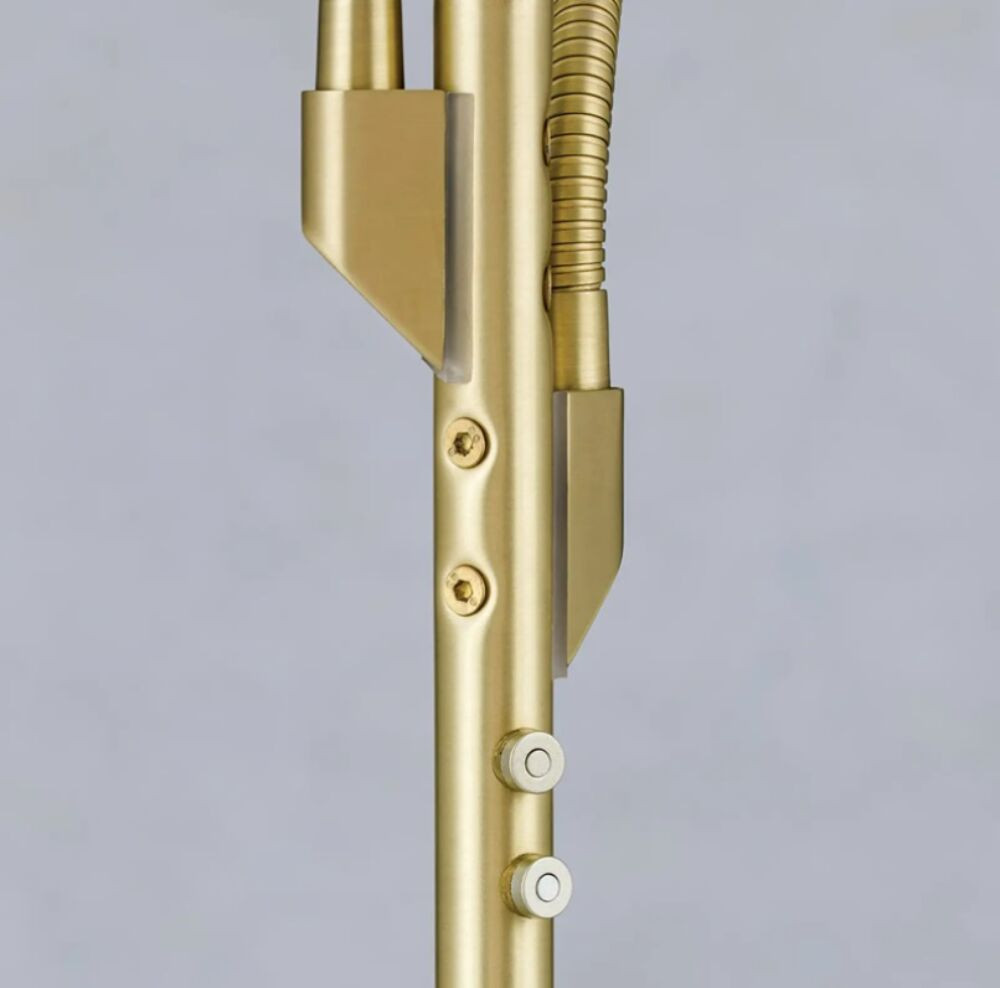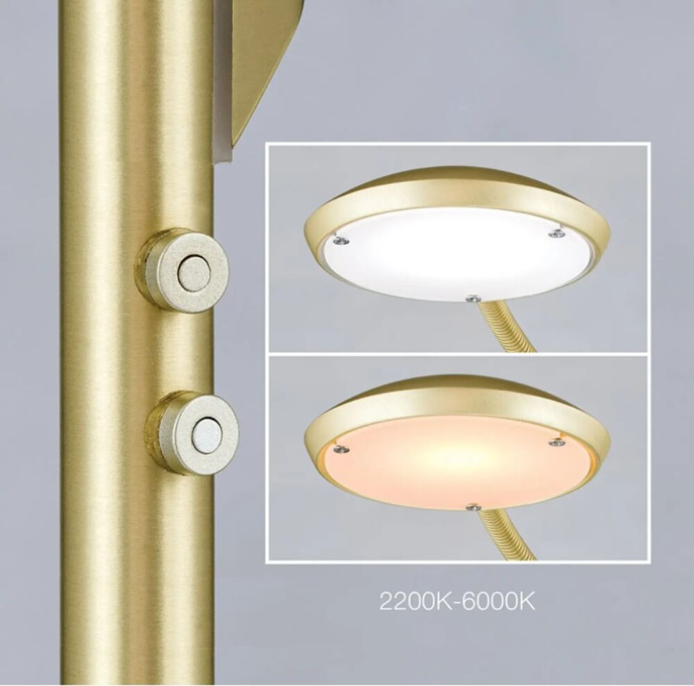Cobra Állólámpa Matt réz Modern remekül illik a modern enteriőrökbe. A matt réz test fém kivitelű. A búra matt arany árnyalatú. Beépített LED technológiával készült. beltéri lámpa terekbe ajánlott.