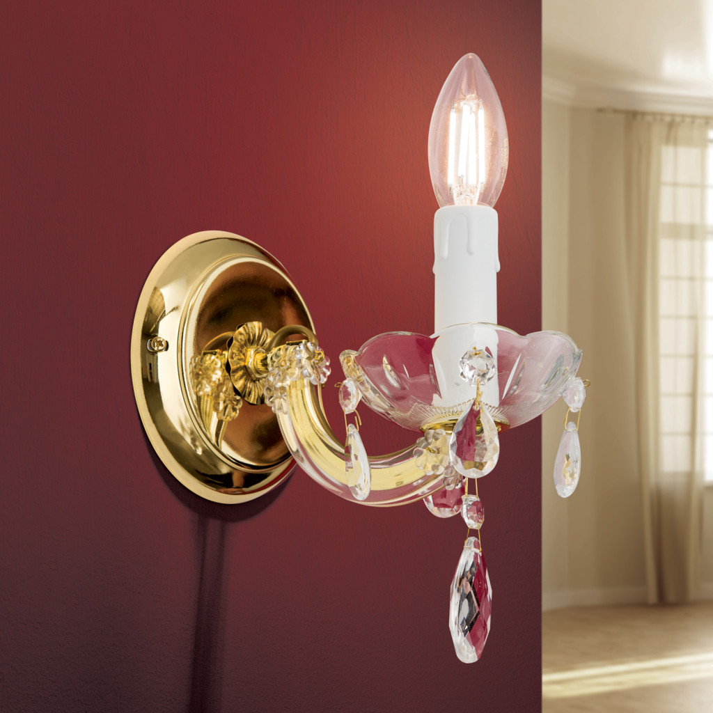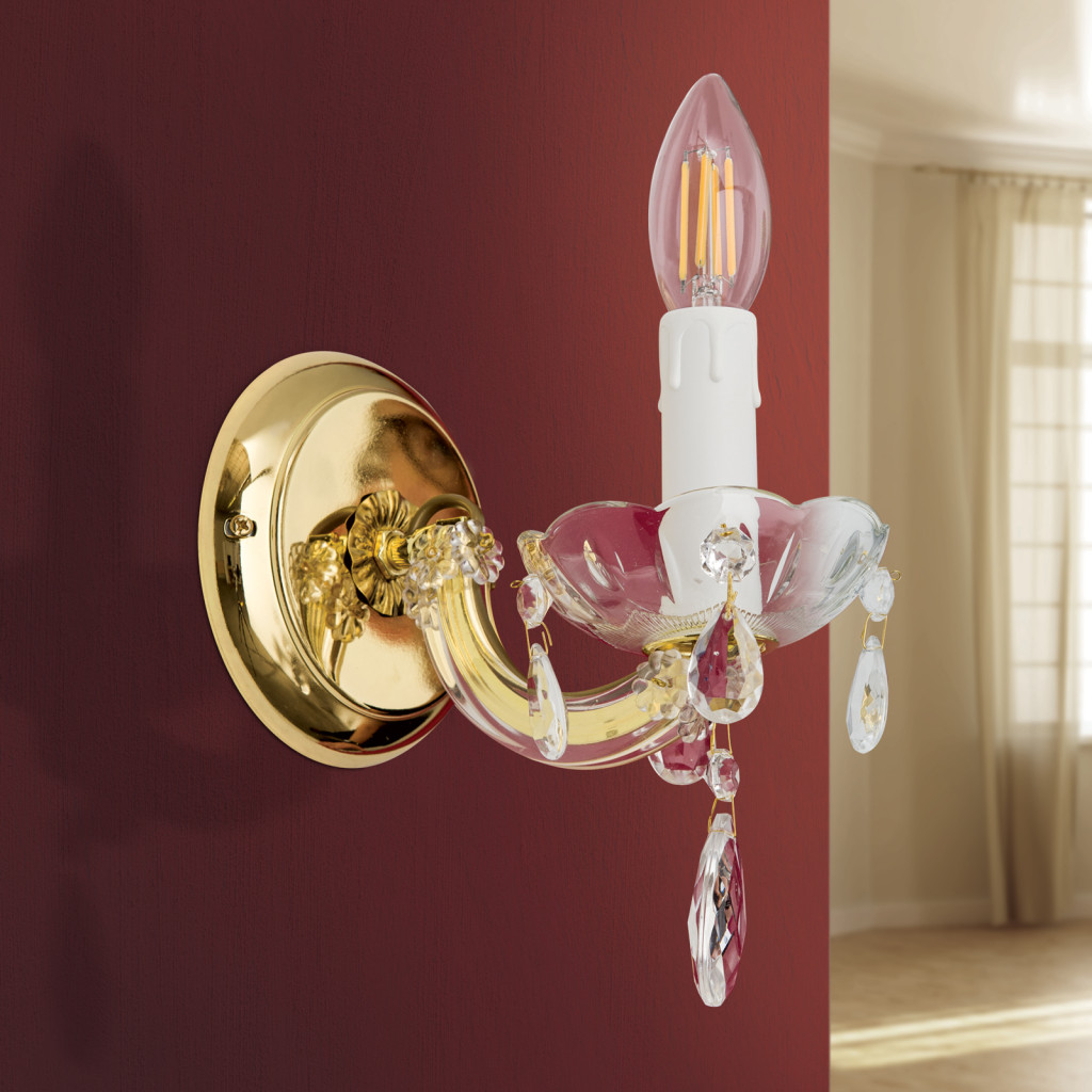 A MARIE kristály fali lámpa, egyes megbízható és esztétikus választás otthoni vagy irodai használatra. Stílusát tekintve Klasszikus kristály, arany/átlátszó árnyalatban, fém/üveg anyagból készült. E14 foglalattal kompatibilis, így cserélhető fényforrással használható. A(z) MARIE lámpacsalád tagja, így más kiegészítőkkel jól kombinálható.