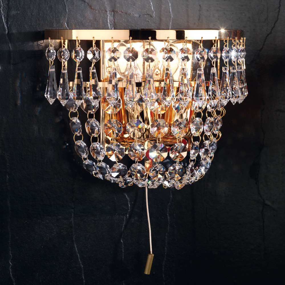 A Sheraton kristály fali lámpa, arany, 16 cm, 2xE14 megbízható és esztétikus választás otthoni vagy irodai használatra. Stílusát tekintve klasszikus-kristály, arany árnyalatban, sárgaréz anyagból készült. E14 foglalattal kompatibilis, így cserélhető fényforrással használható. A(z) Sheraton lámpacsalád tagja, így más kiegészítőkkel jól kombinálható.