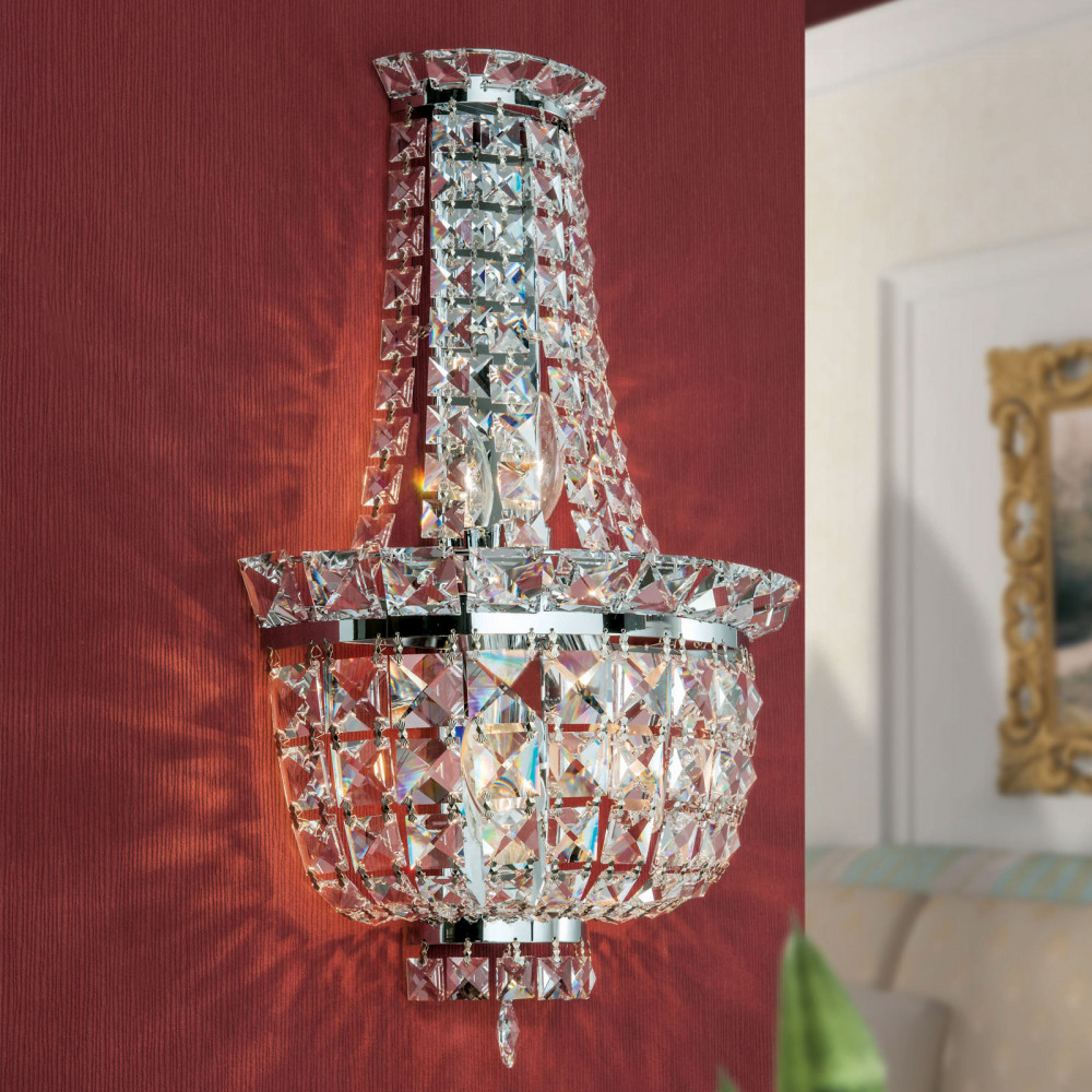 Az Ambassador kristály fali lámpa, króm, 0 cm, 3xE14 megbízható és esztétikus választás otthoni vagy irodai használatra. Stílusát tekintve klasszikus-kristály, króm árnyalatban, sárgaréz anyagból készült. E14 foglalattal kompatibilis, így cserélhető fényforrással használható. A(z) Ambassador lámpacsalád tagja, így más kiegészítőkkel jól kombinálható.
