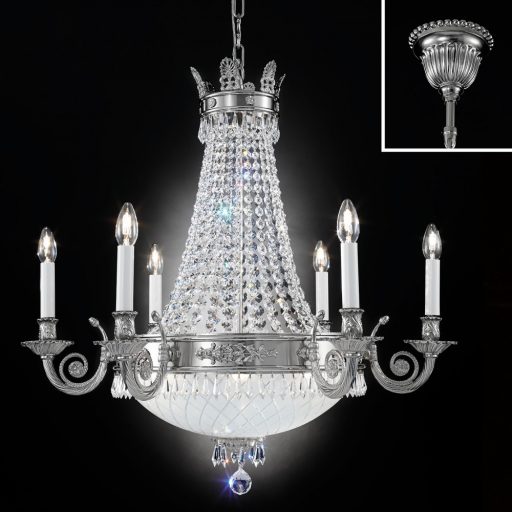 Az Empire Crystal kristály csillár, ezüst, 80 cm, 6xE14 megbízható és esztétikus választás otthoni vagy irodai használatra. Stílusát tekintve klasszikus-kristály, ezüst árnyalatban, sárgaréz anyagból készült. E14 foglalattal kompatibilis, így cserélhető fényforrással használható. A(z) Empire Crystal lámpacsalád tagja, így más kiegészítőkkel jól kombinálható.