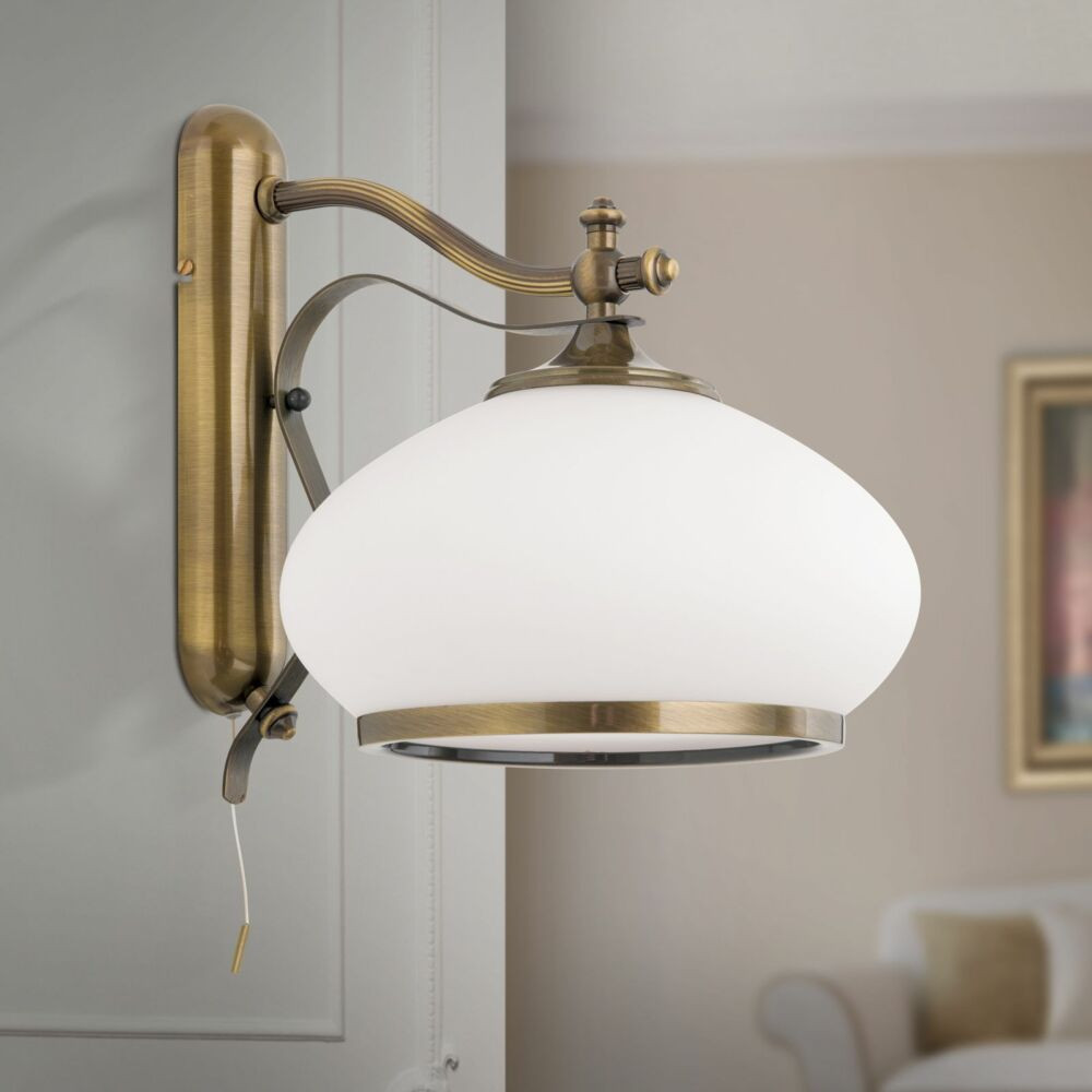 Empire Fali lámpa 1x E27 Arany Klasszikus remekül illik a klasszikus enteriőrökbe. A arany test réz kivitelű. A búra matt opál árnyalatú. 1x E27 foglalattal szerelve. Cserélhető fényforrással használható. beltéri lámpa terekbe ajánlott.