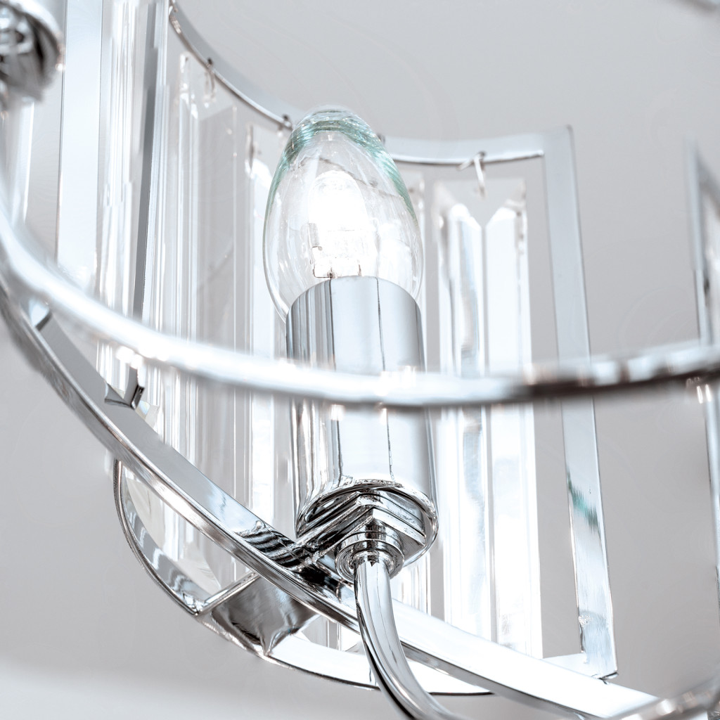 A GSTAAD kristálycsillár megbízható és esztétikus választás otthoni vagy irodai használatra. Stílusát tekintve Modern kristály, króm árnyalatban, fém anyagból készült. E14 foglalattal kompatibilis, így cserélhető fényforrással használható. A(z) GSTAAD lámpacsalád tagja, így más kiegészítőkkel jól kombinálható.