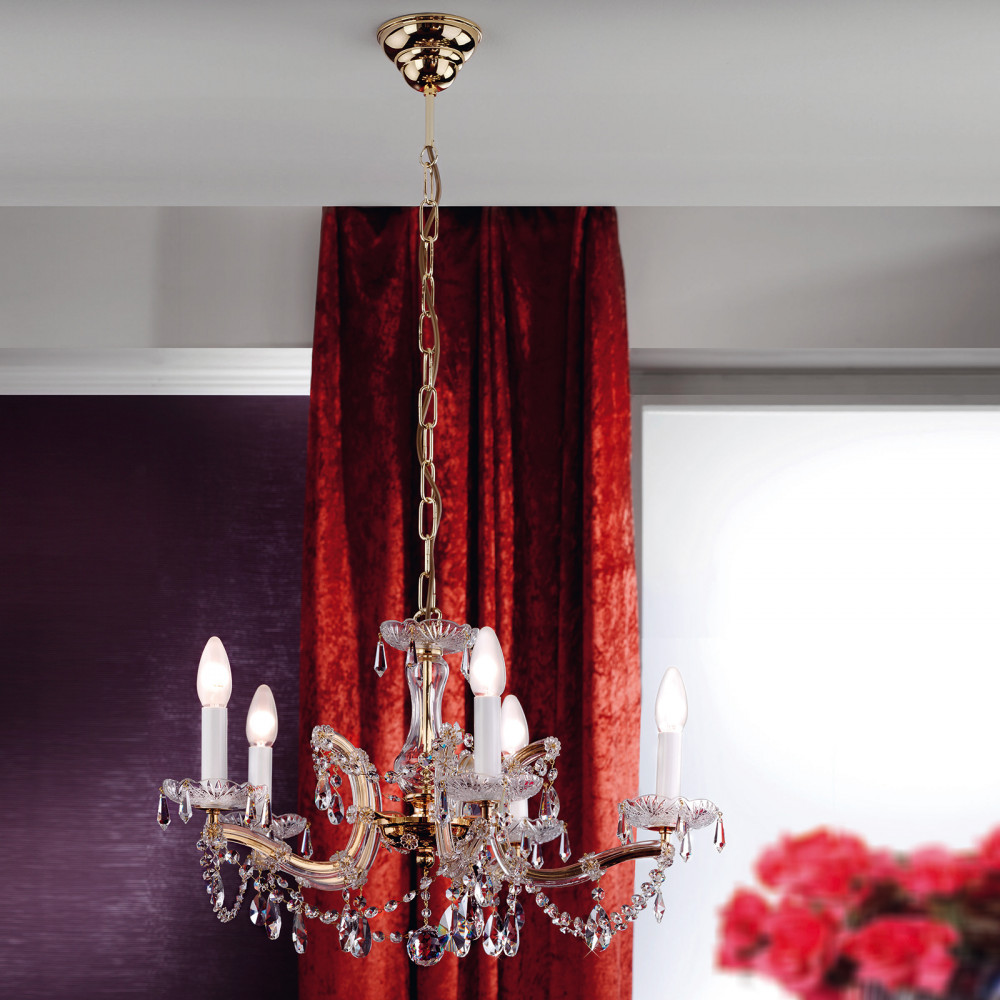 A Klassisch kristály csillár, arany, 60 cm, 5xE14 megbízható és esztétikus választás otthoni vagy irodai használatra. Stílusát tekintve klasszikus-kristály, arany árnyalatban, sárgaréz anyagból készült. E14 foglalattal kompatibilis, így cserélhető fényforrással használható. A(z) Klassisch lámpacsalád tagja, így más kiegészítőkkel jól kombinálható.