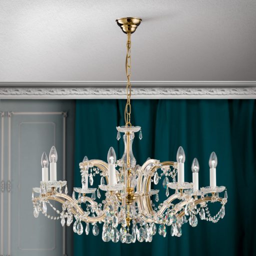 A Klassisch kristály csillár, arany, 80 cm, 8xE14 megbízható és esztétikus választás otthoni vagy irodai használatra. Stílusát tekintve klasszikus-kristály, arany árnyalatban, sárgaréz anyagból készült. E14 foglalattal kompatibilis, így cserélhető fényforrással használható. A(z) Klassisch lámpacsalád tagja, így más kiegészítőkkel jól kombinálható.