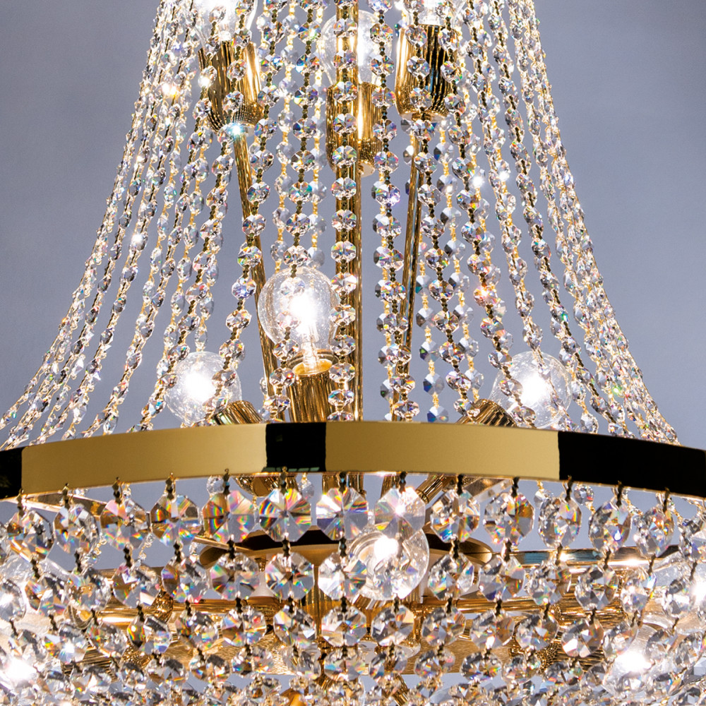 A Sheraton kristály csillár, arany, 70 cm, 0xE27 megbízható és esztétikus választás otthoni vagy irodai használatra. Stílusát tekintve klasszikus-kristály, arany árnyalatban, sárgaréz anyagból készült. E27 foglalattal kompatibilis, így cserélhető fényforrással használható. A(z) Sheraton lámpacsalád tagja, így más kiegészítőkkel jól kombinálható.