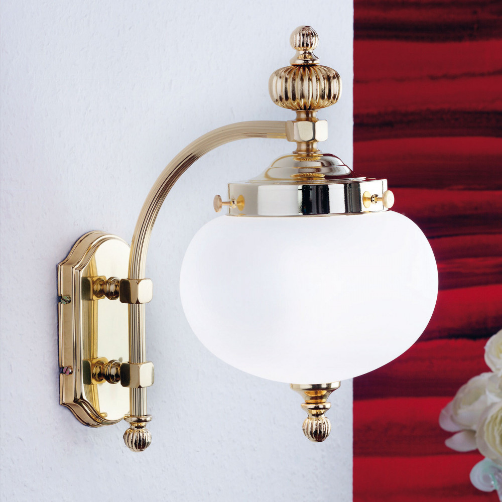 Wiener Nostalgie klasszikus fali lámpa réz, opál búra, 1xE27