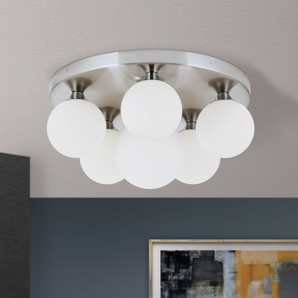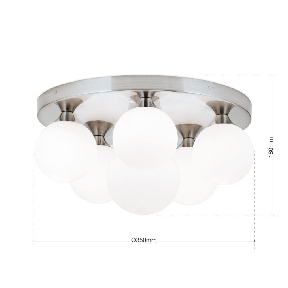 White lady Mennyezeti lámpa 6x G9 Matt króm Modern 36 cm remekül illik a modern enteriőrökbe. A búra matt opál árnyalatú. 6x G9 foglalattal szerelve. Cserélhető fényforrással használható.