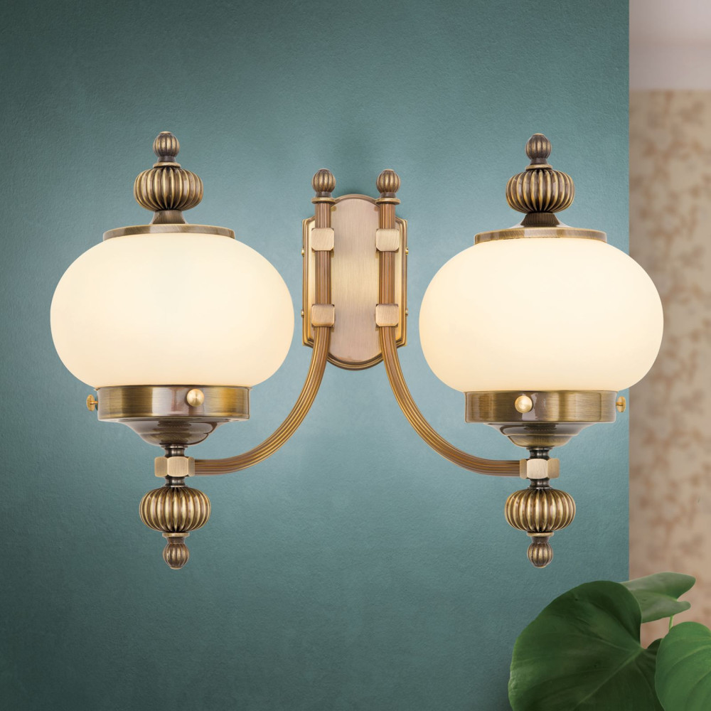 Wiener nostalgie Fali lámpa 2x E27 Patina Klasszikus remekül illik a klasszikus enteriőrökbe. A patina test sárgaréz kivitelű. 2x E27 foglalattal szerelve. Cserélhető fényforrással használható. beltéri lámpa terekbe ajánlott.