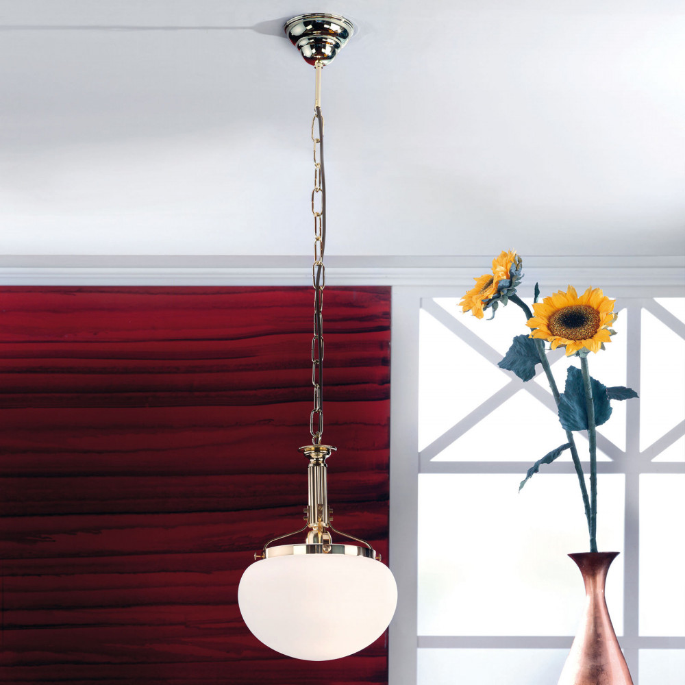 Wiener Nostalgie klasszikus függőlámpa réz, opál búra, 1xE27